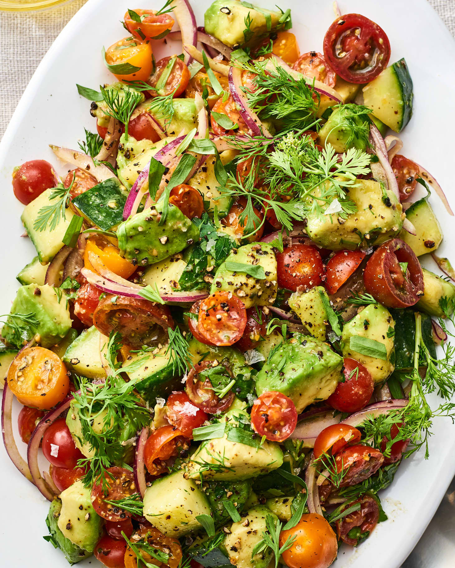 Easy Avocado Tomato and Cucumber Salad Recipe The Food Cafe How To Make Salad Dressing With Avocado Oil This paragraph gives you all my tips about picking the right ingredients. Web add a 1/2 teaspoon of powdered curry or cumin. Web to make this creamy avocado dressing you will need: Web using the amount of acid (citrus or vinegar) we’d typically use in an. Web while avocado oil is nothing new, it’s a fun and healthy oil you. How To Make Salad Dressing With Avocado Oil.